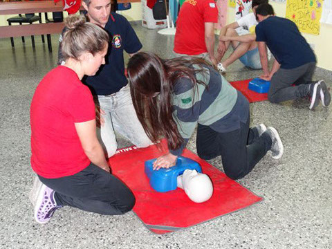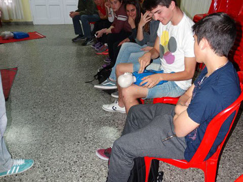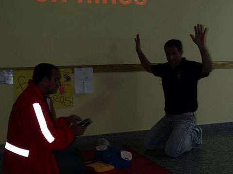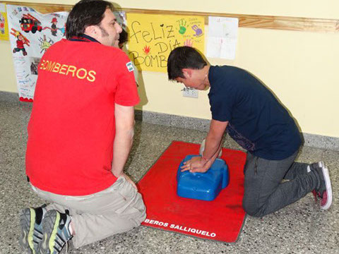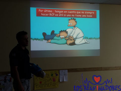 El próximo paso fue hacer un Curso de RCP con los Bomberos Voluntarios de nuestra localidad. Ellos a través del Departamento de Capacitación y Prevención dictan charlas hace más de 12 años, están capacitados por el Ministerio de Salud de la Provincia de Buenos Aires quien los habilita para dictar estos cursos y además, y no menos importante, tienen el material teórico y práctico necesario.